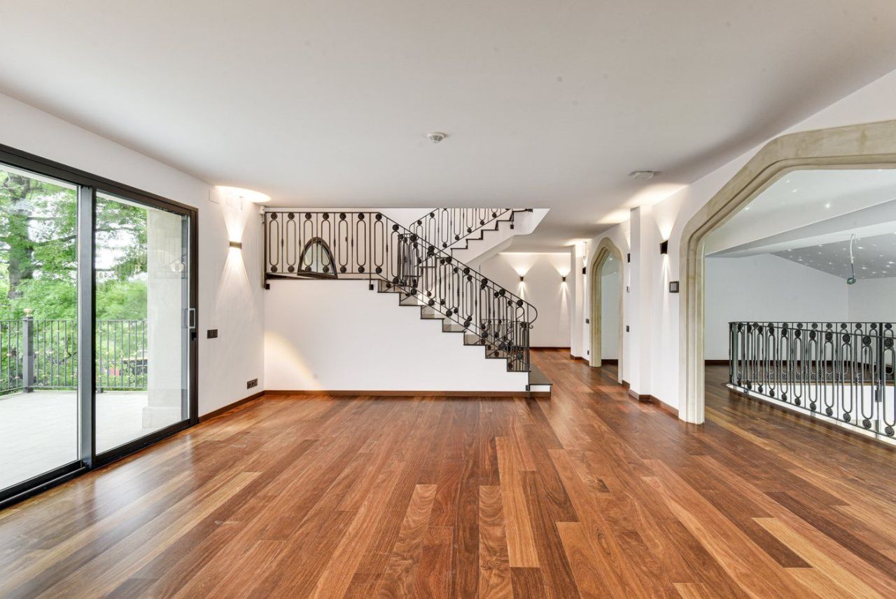 В самом сердце поселка находится потрясающий 4-этажный особняк площадью 2000 кв.м. с 8 спальнями, 12 ванными комнатами, огромным гаражом, двумя бассейнами и – что самое удивительное – собственным тиром. Это дом, который заслуживает полного восхищения.