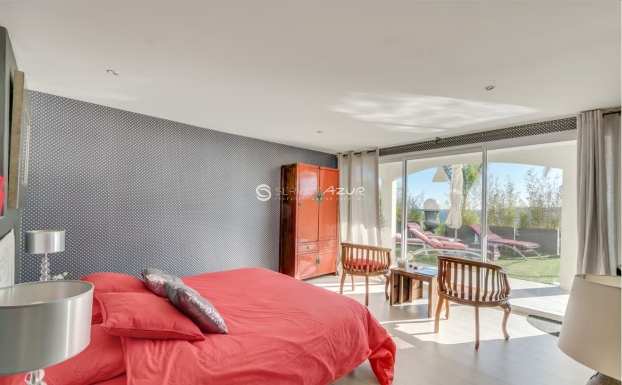 Аренда современной виллы, жилой площадью 400 кв.м. Вилла расположена в Saint-Maxime в 300х метрах от моря и в 30 минутах езды от Сен-Тропе. Недавно отремонтирована, 2х этажная вилла имеет просторную гостиную с камином и выходом на балкон с которого открывается панорамный вид на окрестности и море. 6 спален и 5 ванных комнат. Перед домом терраса с бассейном и барбекью. Дом ориентирован на южную сторону и залит солнечным светом большую часть дня. Площадь участка 2 100 кв.м.