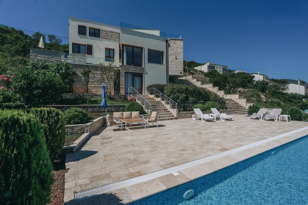 Вилла имеет внутренний атриум, просторные и светлые жилые помещения, три открытые террасы и захватывающий вид на Тиватский залив и остров Свети Марко.