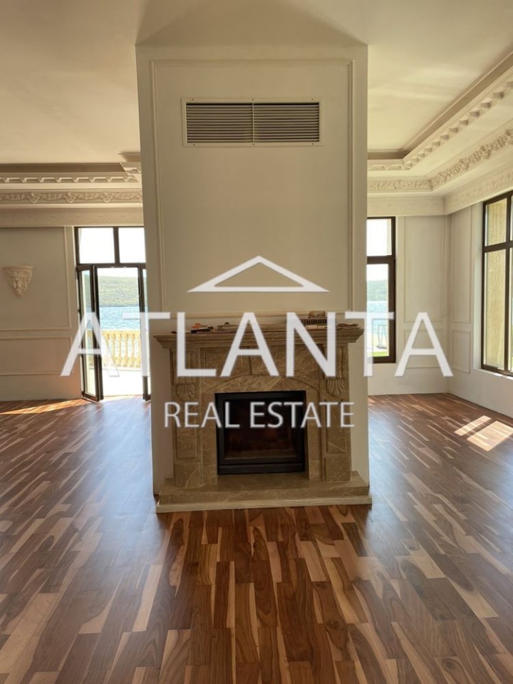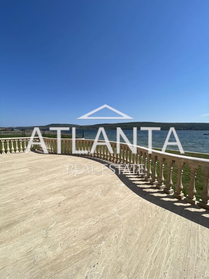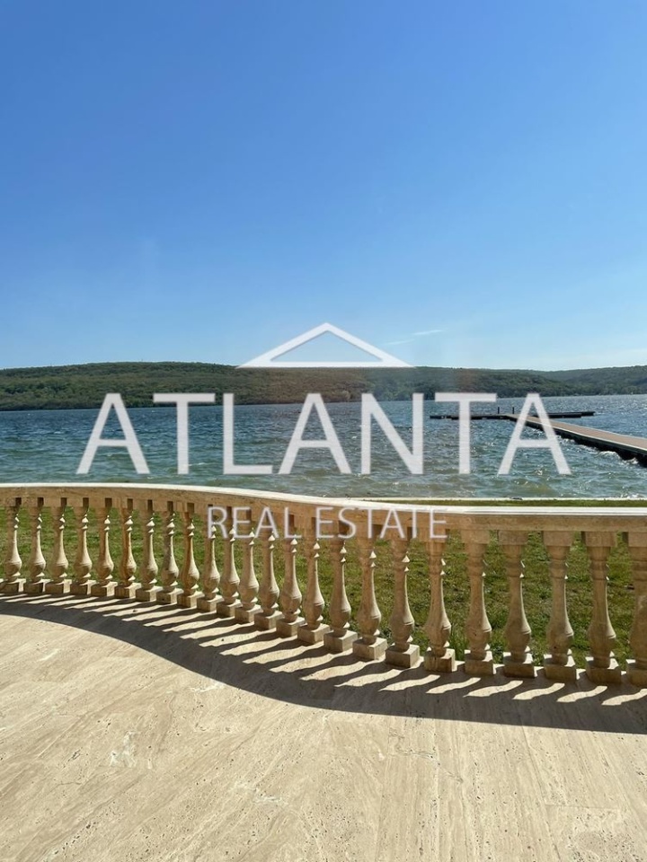 Предлагаем на продажу дом на берегу Варненского озера. Общая площадь дома составляет 850 кв.м., а площадь участка — 1350 кв.м. Код предложения: IR-5926 Дом построен из материалов высочайшего класса: кирпича Wienerberger, крыши из металлочерепицы /хлопьев/, что придаёт зданию особый шарм. Дом полностью облицован травертином, утеплитель — каменная вата, паркет из тика, гипсовые орнаменты на потолках и стенах, каменные балясины. Часть двора вымощена брусчаткой. Планировка дома следующая: первый этаж — гараж на две машины, большая входная дверь, ведущая в прихожую с выходом в гостиную и на лестницу на второй и третий этажи, просторная гостиная высотой 3,2 м, внутренняя лестница из гостиной с каменными балюстрадами, французские окна, ведущие на веранду, кабинет. второй этаж — четыре спальни, две из которых имеют собственные ванные комнаты и террасы, ванная комната с туалетом, задняя лестница с доступом в комнату с ванной комнатой, которую можно использовать как прачечную или для обслуживающего персонала. третий этаж — большая комната, подходящая для кинотеатра или тренажерного зала. У дома есть собственный законный причал. Прекрасный вид на Варненское озеро.