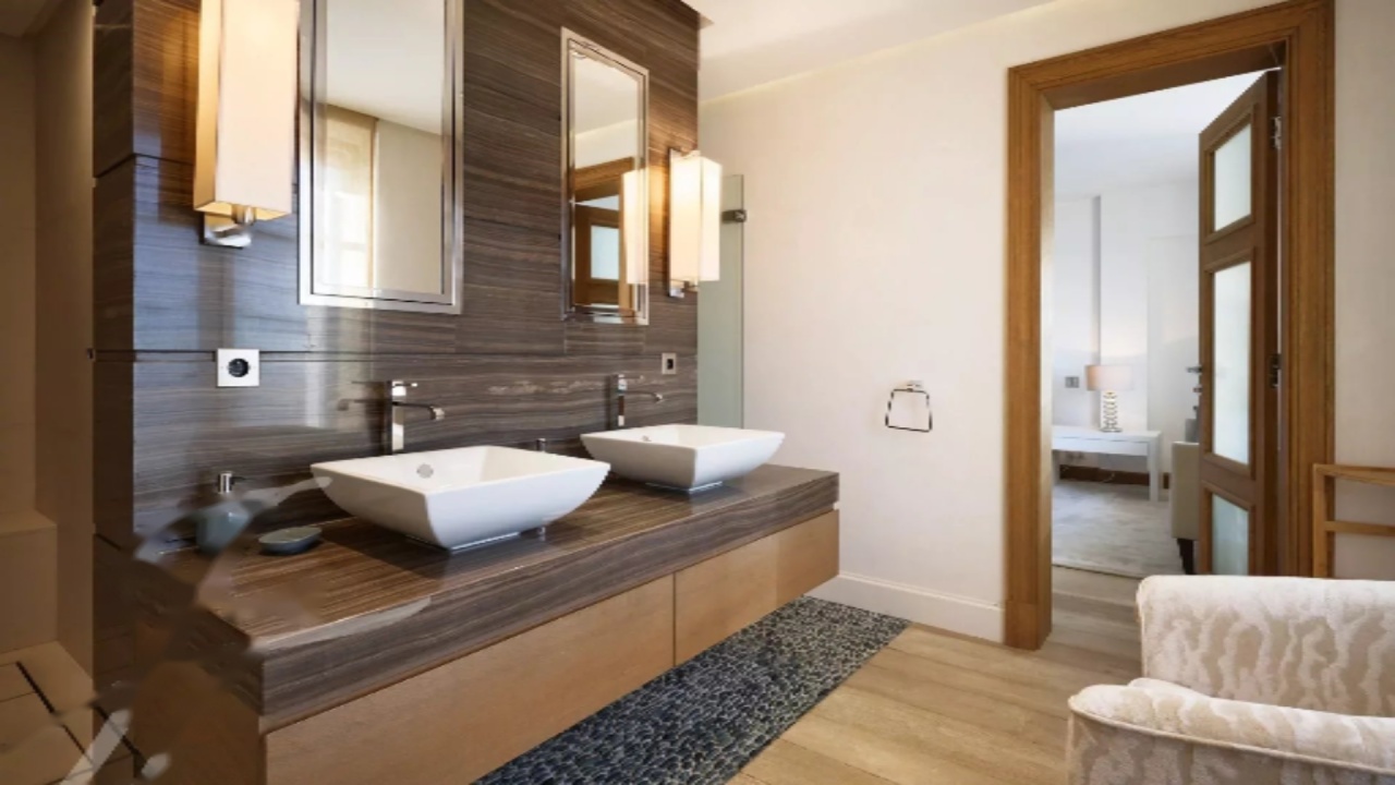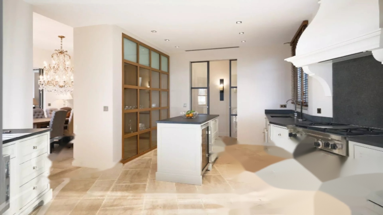 На нижнем этаже: просторная гостиная с каминным уголком, открытая на террасу, столовая также с выходом на террасу, ведущую к крытой террасе, оборудованной летней столовой и гостевым туалетом; красивая кухня с винным погребом, открытая на террасу; вторая полностью оборудованная кухня с прачечной, а также спальня с душевой.