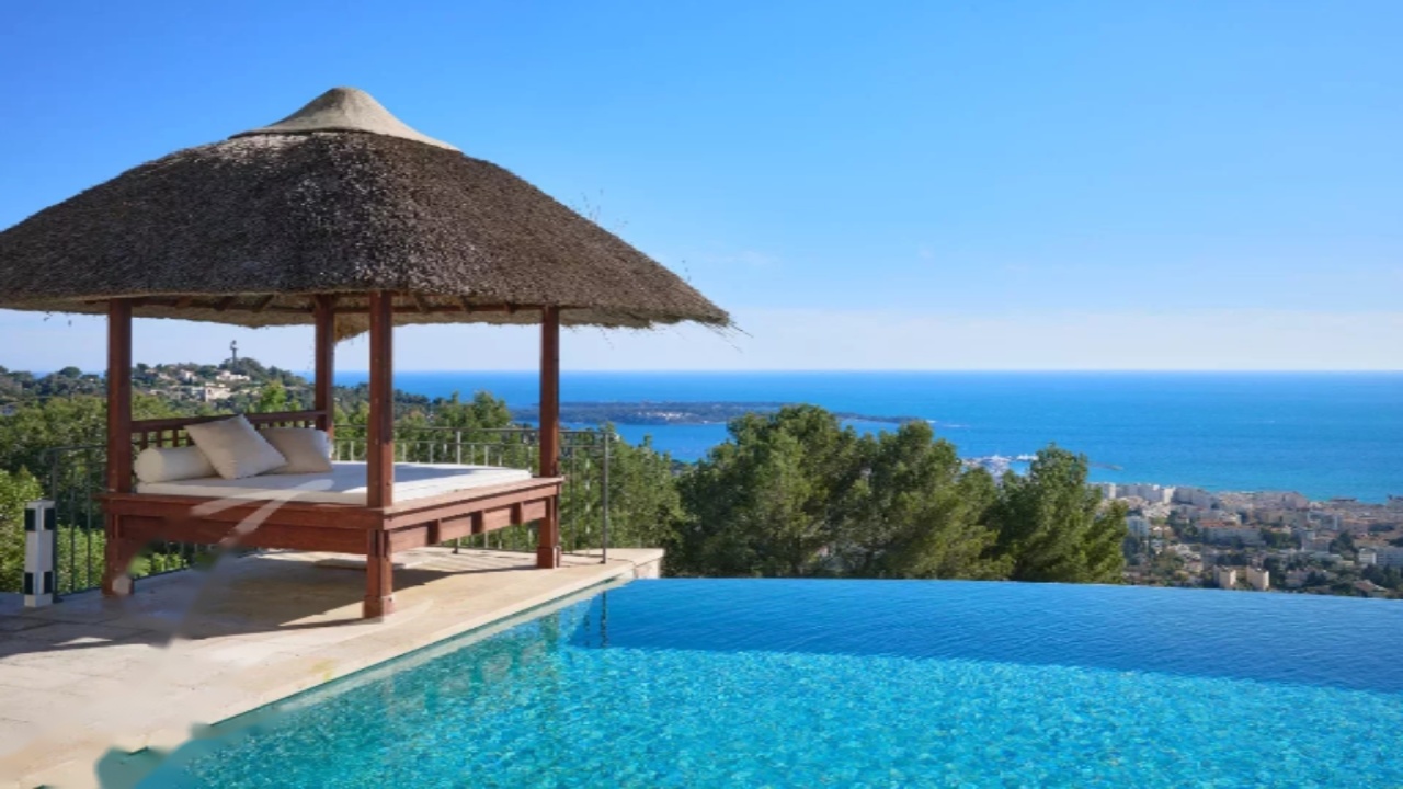На участке площадью около 7 700 м², прекрасно оформленном ландшафтным дизайном, зона бассейна приглашает к отдыху с видом на Средиземное море. Она включает в себя крытую террасу, оборудованную гостиной и летней кухней с баром, а также душевой и туалетом. Бассейн с эффектом бесконечности, который может быть подогреваемым, оснащен джакузи. Оборудованный тренажерный зал с видом на море также доступен.