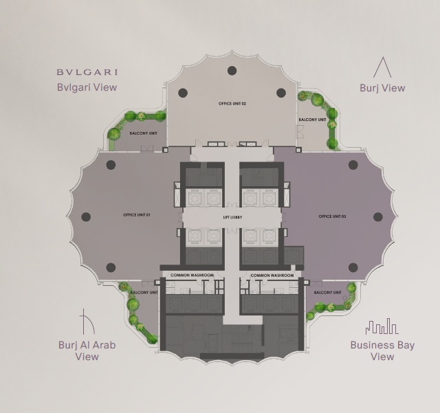 Удобства: Executive Wellness Suite с бассейном и фитнес-центром, Executive Business Club с коворкингом, Sky Theatre для масштабных мероприятий, ритейл-подиум с эксклюзивными бутиками и ресторанами, конференц-залы, паровая, сауна и ледяные ванны, студия йоги и пилатеса, кофейня, круглосуточная охрана и консьерж-сервис для офисов и многое другое.