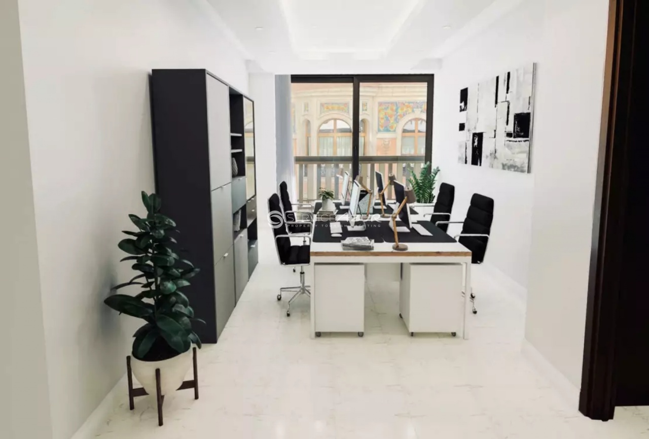 Продажа офиса, расположенного в самом сердце района «Золотой Квадрат» в престижной резиденции Monte-Carlo Palace с консьерж-сервисом, в самом центре Княжества Монако, рядом с пляжами и площадью Казино Монте-Карло. - Полностью отреставрированное помещение включает террасу 29 кв.м. с видом на парк Казино, три индивидуальных офисов, оборудованных несколькими встроенными шкафами, кухню, 2 отдельных санузла. - Есть возможность приобрести дополнительные кладовые помещения и/или парковочные места.