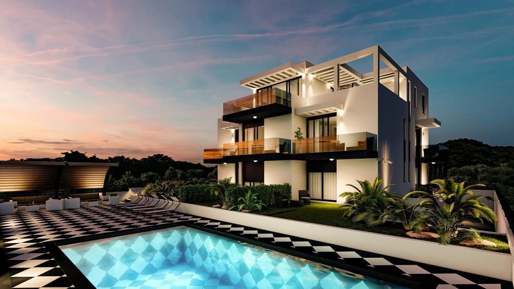 Это действительно небольшой роскошный клубный отель с пентхаусом наверху, предназначенный для владельца, полностью завершенный и функционирующий с июля 2021 года. Его преимуществом является близость к Рогознице с ее знаменитой пристанью для яхт ACI и многочисленными туристическими объектами, такими как рестораны, бары, развлечения.